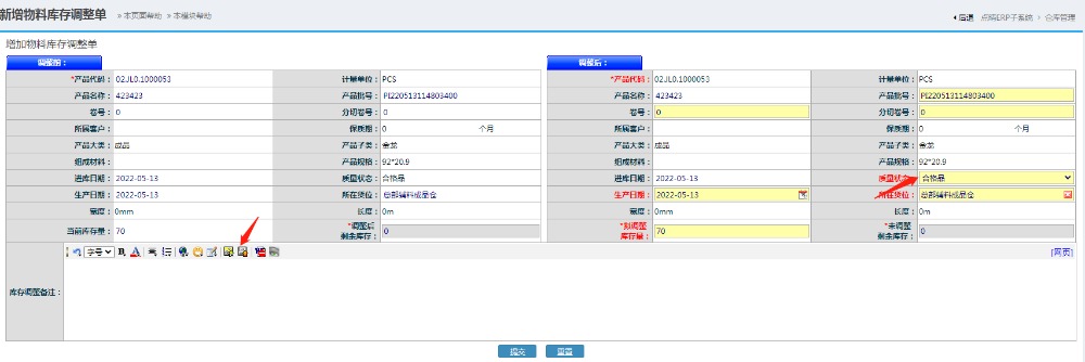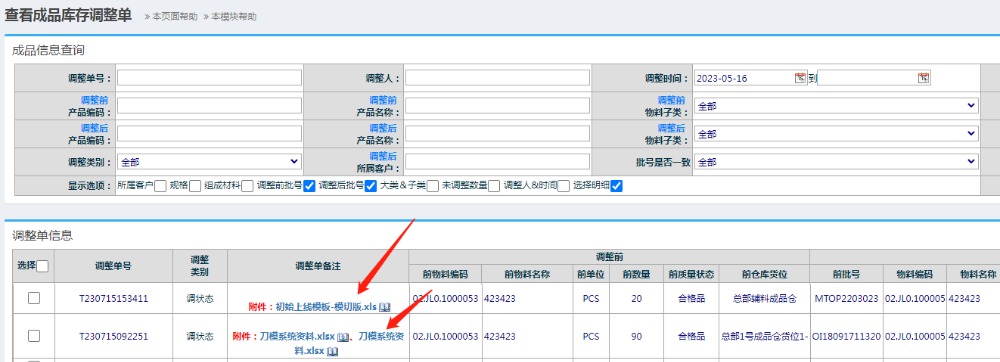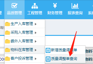 完成后进入品质管理-物料在库管理-质量调整单查询