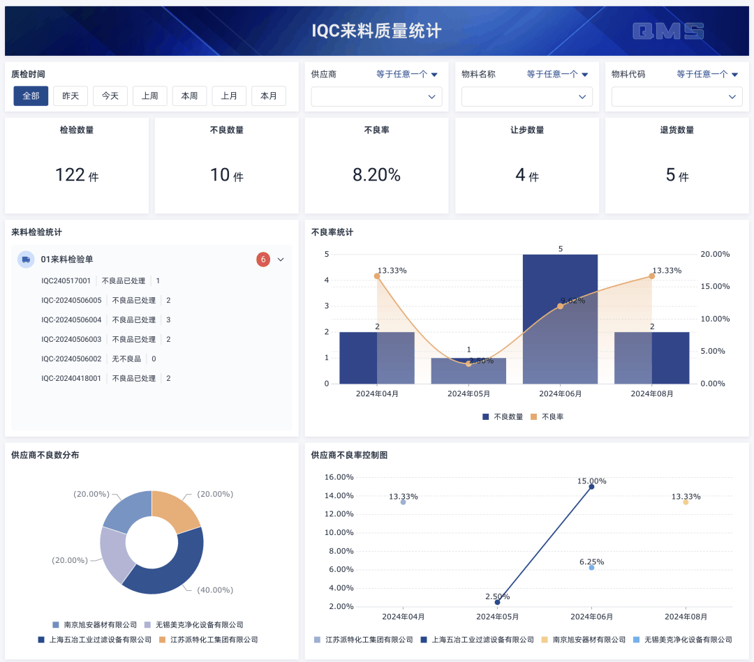 • 供应商管理:对供应商的质量表现进行评分,优化采购渠道。