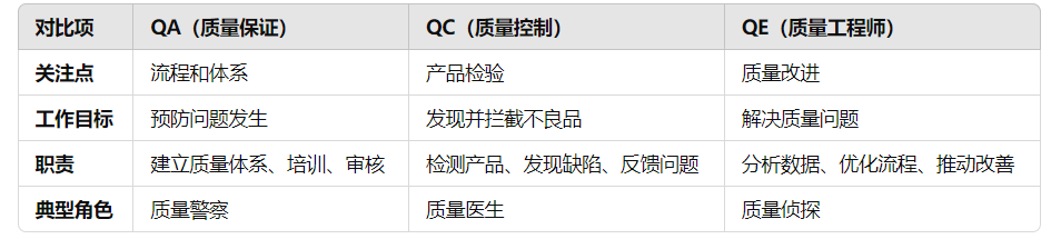 简单理解:QE 就像“质量侦探”,负责分析和解决质量问题,从根源上减少缺陷。