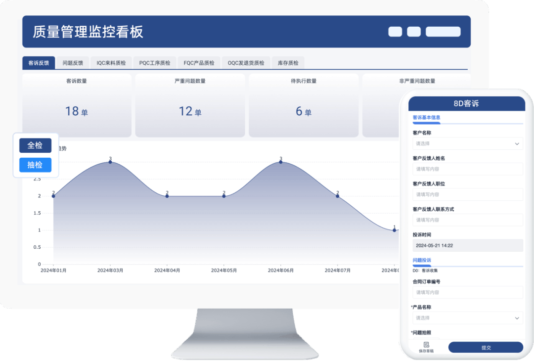 • 数据分析与报表:实时监测质量状况,生成可视化报告,帮助决策。