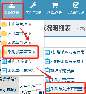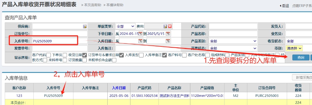点晴模切ERP-采购入库单拆分开发票-操作流程