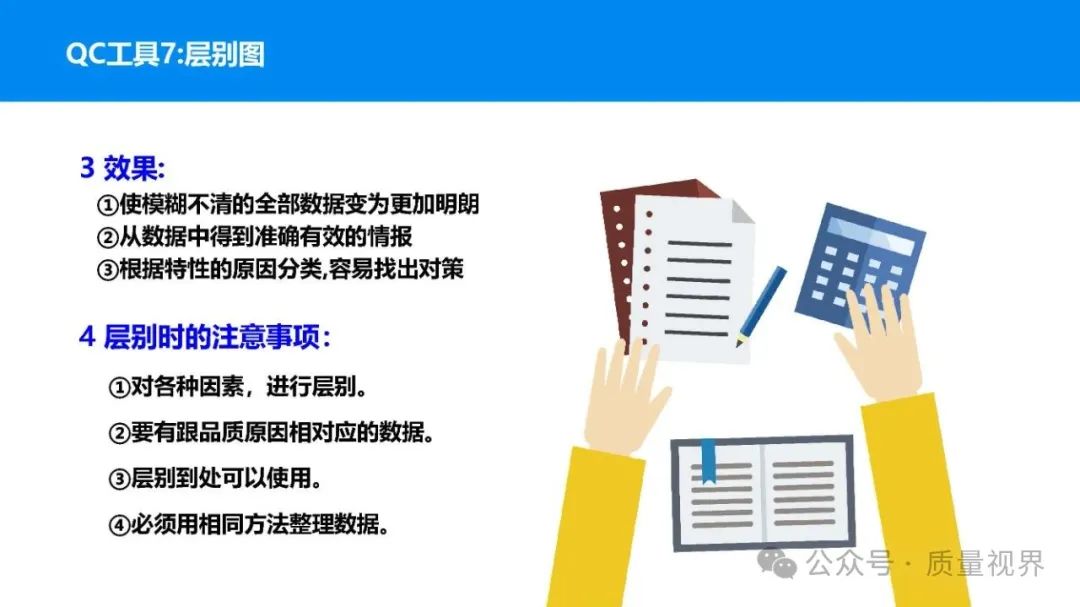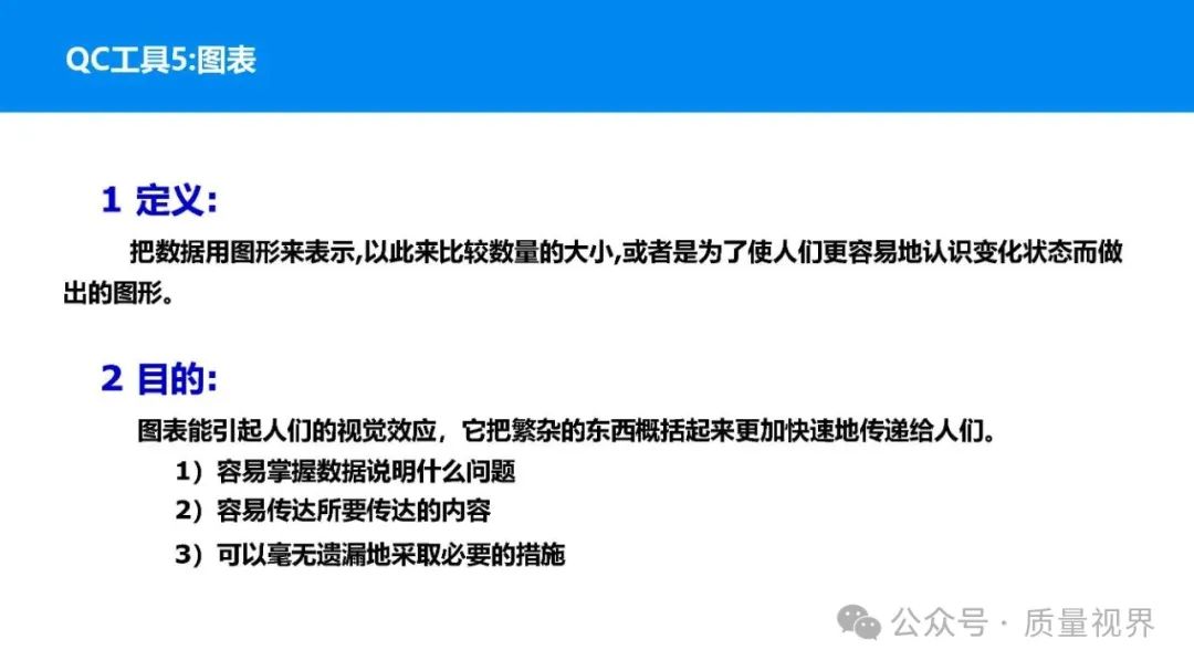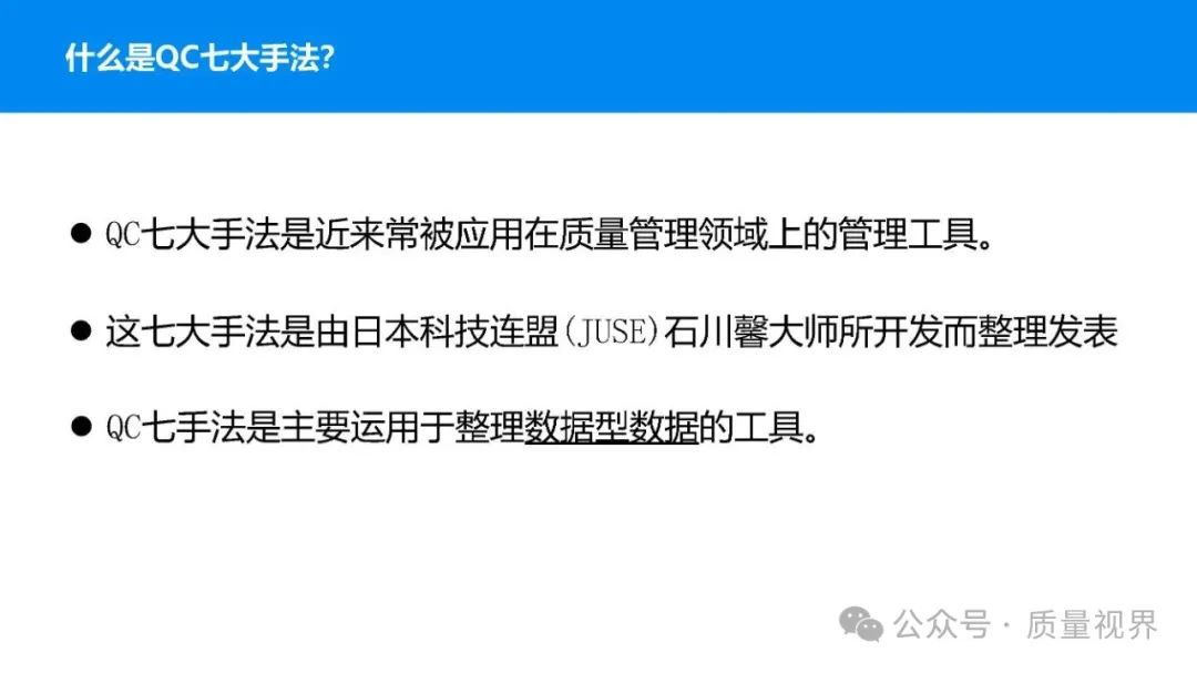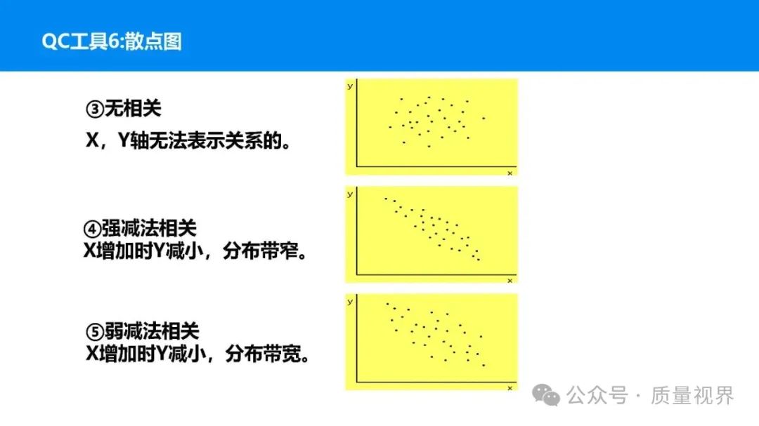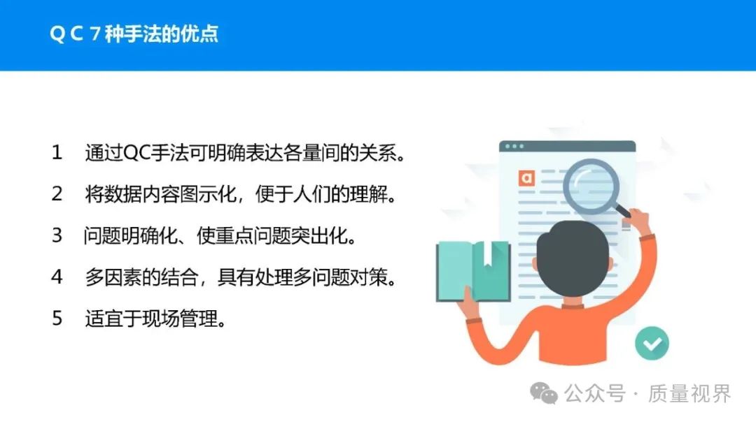 在质量管理领域,七大工具是提升产品质量、优化流程的重要手段。它们操作简便、实用性强,能帮助我们从复杂的数据和现象中找到关键问题,为质量改进提供明确方向。以下将逐一介绍这七大工具。检查表是一种为收集和整理数据而设计的表格,它能让数据收集过程更有条理,避免遗漏关键信息。可以系统地收集特定问题的数据,为后续的分析提供可靠依据。比如在生产车间,可用于记录每天产品的不合格项数量及类型。(二)制作步骤明确收集数据的目的,比如是为了了解某产品的不合格原因分布。确定需要收集的数据项目,如不合格类型、发生时间、发生地点等。设计表格样式,将数据项目合理排列。确定数据收集的周期和负责人。按照表格要求进行数据填写。某电子厂为了解手机屏幕的不合格情况,设计检查表记录每天的不合格类型,如划痕、亮点、暗点等。一周后,通过检查表数据能直观看到划痕问题出现的次数最多,为后续解决该问题提供了数据支持。柏拉图又称排列图,它基于 “关键的少数,次要的多数” 原则,将数据按重要程度排序,以柱状图和折线图结合的形式展示,帮助识别主要问题。能快速找出影响质量的主要因素,让我们把精力集中在关键问题上,提高质量改进的效率。(二)制作步骤确定分析的问题和数据范围,比如某产品的不合格原因及对应数量。对数据进行分类统计,计算各类别的数量和占比。按数量从大到小排序。绘制柱状图,横轴为类别,纵轴为数量;再绘制折线图,纵轴为累计占比。在累计占比 80% 左右的位置画一条横线,横线左侧的类别即为主要问题。某服装加工厂对衬衫的不合格品进行统计,发现线头、尺寸偏差、面料瑕疵、纽扣松动等问题。通过制作柏拉图,发现线头和尺寸偏差的累计占比达到 80%,于是重点针对这两个问题进行改进,有效降低了不合格率。鱼骨图又称因果图,因其形状像鱼骨而得名。它将影响质量的因素按类别进行梳理,找出问题的根本原因。能全面、系统地分析问题产生的原因,避免遗漏,帮助找到根本解决办法,而不是只解决表面问题。(二)制作步骤明确需要分析的质量问题,写在鱼骨的 “鱼头” 位置。确定主要原因类别,通常包括人、机、料、法、环、测等,作为鱼骨的主骨。针对每个主骨,进一步分析次要原因,作为子骨。继续深入分析,找出更具体的原因,直到能采取措施解决为止。对分析出的原因进行筛选,确定根本原因。某食品厂生产的饼干出现口感偏硬的问题,用鱼骨图分析。从人(操作工人烘焙时间控制不当)、机(烤箱温度不稳定)、料(面粉含水量过高)、法(烘焙工艺参数不合理)、环(车间湿度大)、测(温度检测仪器不准)等方面入手,最终发现烤箱温度不稳定和烘焙工艺参数不合理是根本原因。直方图是将数据按一定区间分组,以矩形的高度表示每组数据的频数,从而展示数据的分布状态。能直观地反映数据的分布特征,如数据的集中程度、离散程度、是否存在异常值等,帮助判断生产过程是否稳定。(二)制作步骤收集数据,确定数据的数量,一般建议不少于 50 个。找出数据中的最大值和最小值,计算极差(最大值 - 最小值)。确定组数和组距,组数通常根据数据数量确定,组距 = 极差 ÷ 组数。确定每组的区间范围,注意区间要连续且不重叠。统计每组数据的频数。绘制直方图,横轴为数据区间,纵轴为频数。某机械厂对零件的直径进行测量,得到一批数据。通过绘制直方图,发现数据呈现正态分布,且在标准范围内,说明生产过程稳定。若直方图出现偏态或有数据超出标准范围,则表明生产过程存在问题,需及时调整。控制图是用于监控生产过程是否处于稳定状态的工具,通过设置控制界限,判断过程是否出现异常波动。能及时发现生产过程中的异常情况,以便采取措施进行调整,预防不合格品的产生,保证生产过程的稳定性。(二)制作步骤确定需要监控的质量特性,如产品的尺寸、重量等。收集数据,按时间顺序或批次分组。计算每组数据的平均值(或中位数)和极差(或标准差)。确定控制界限,通常包括中心线(CL)、上控制限(UCL)和下控制限(LCL),一般以 ±3 倍标准差作为控制限。绘制控制图,横轴为样本组序号,纵轴为质量特性值,标注中心线和控制限,并将数据点绘制在图上。分析控制图,若数据点在控制限内且随机分布,说明过程稳定;若出现数据点超出控制限、连续多点在中心线一侧等情况,则表明过程异常。某饮料厂监控瓶装饮料的容量,通过控制图对每小时抽取的样本进行跟踪。当发现连续 3 个数据点在中心线以上且逐渐接近上控制限时,及时检查灌装设备,发现是设备压力异常,调整后恢复正常,避免了大量不合格产品的产生。散布图是用于研究两个变量之间相关关系的图形,通过观察数据点的分布形态,判断变量之间是正相关、负相关、不相关还是非线性相关。能直观地展示两个变量之间的关系,帮助确定它们之间是否存在因果关系或关联程度,为质量改进提供依据。(二)制作步骤确定需要研究的两个变量,如温度和产品合格率。收集成对的数据,一般建议不少于 30 对。建立坐标系,横轴为一个变量,纵轴为另一个变量。将每对数据对应的点绘制在坐标系中。观察数据点的分布形态,判断相关关系。某化工企业研究反应温度与产品纯度的关系,绘制散布图后发现,随着温度的升高,产品纯度先上升后下降,