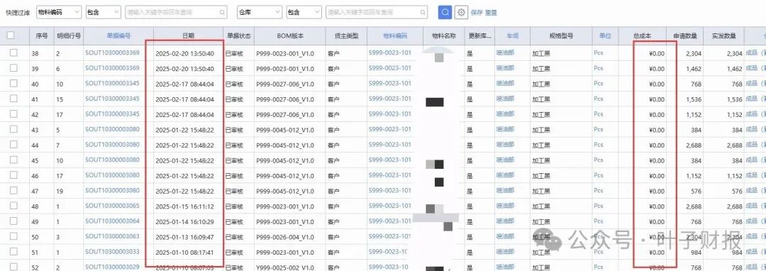 值得注意的是:收到客户物料时做是受托加工物料列表的入库单据,此类单据只有数量,没有成本金额。此模块单据的物料跟正常生产领用的是分开核算的,受托加工物料有入库,有生产领用,但没有成本金额。