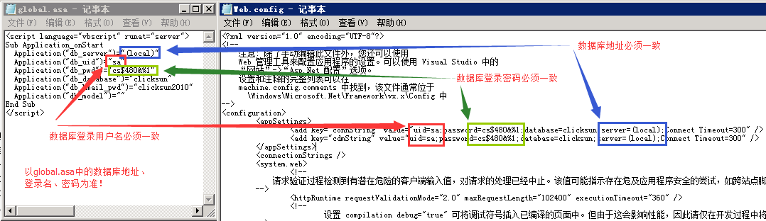 Application("db_pwd")="clicksun2010" '这个是该账号的登陆密码,以实际密码为准