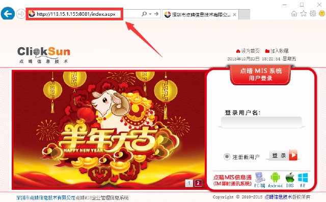 至此,就可以直接使用:http://外网固定IP:端口 的方式顺利访问内网的点晴OA服务器了。