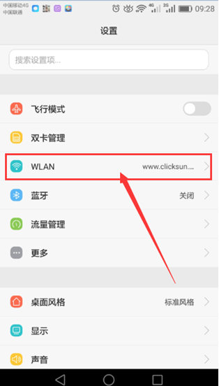 操作图示:4.1.1、打开设置,点击“WLAN”,如下图: