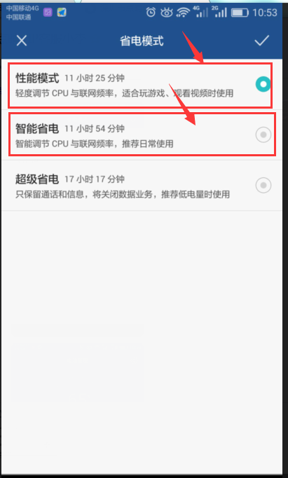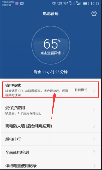 点击“手机管家 > 省电管理”,请不要选择超级省电,默认选择智能省电。 6.1、选择手机管家,进入页面 6.2、进入页面——选择电池管理 6.3、进入页面——点击“省电模式” 6.4、进入页面——选择“性能省电或者智能省电”,如下图所示: QQ图片20180123110104.png)