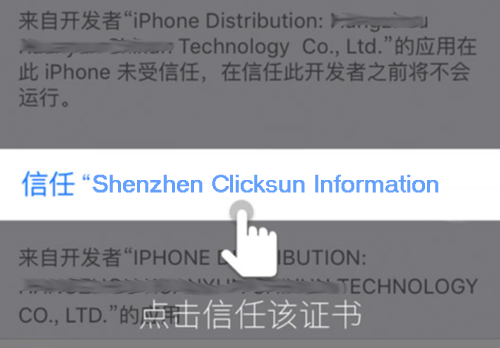 点晴MIS信息通苹果手机APP安装失败(IOS9版):弹出未受信任的企业级开发者,无法取消,如何解决?