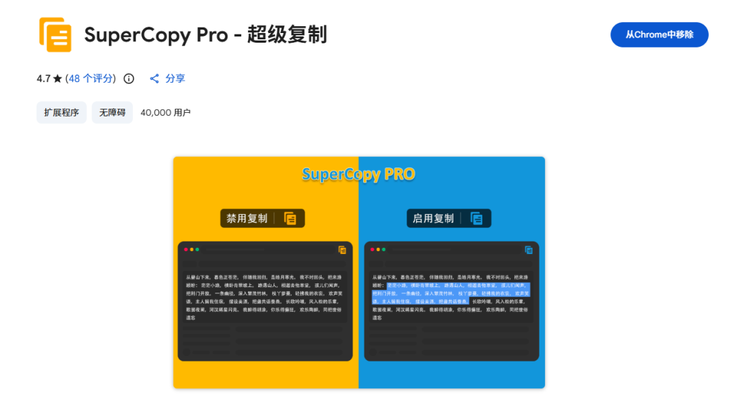 1.supercopy是不是经常遇到很多网站不允许你复制的情况。​直接打开这款插件,就可以一键接触禁止复制,几乎所有网站都能用。2.ublockorigin这是个神奇的网页去广告神器,除了常规的网页,搜索引擎的广告能去除。它还可以去除常见的电影电视剧的视频平台里的广告。3.globalspeed这是一个视频加速插件,你...