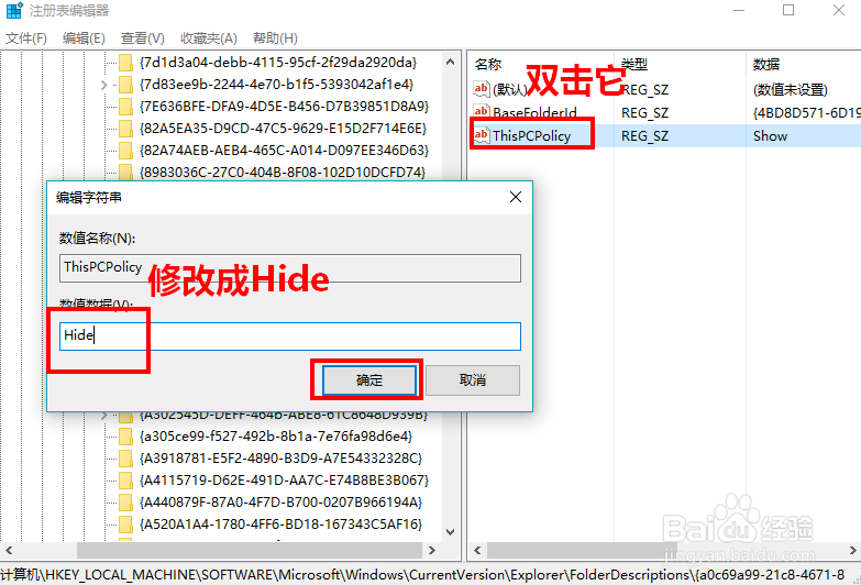 双击“ThisPCPolicy”,输入“Hide”,然后点击【确定】。